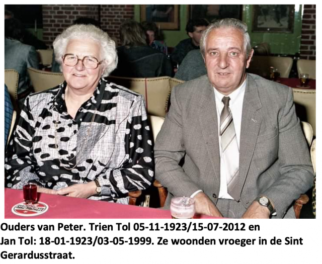 Mijn vader was Jan Tol (de Kip), hij is geboren op het Noordeinde. Hij had vijf broers en een zus. Zijn broer Bruin was priester in Oeganda, Afrika. Zijn broer Jaap werd, omdat hij gasfitter was, ‘de gaskip’ genoemd. Mijn moeder was Trien Tol. Ze was de jongste zus van ‘ouwe Babbet’. Ik heb twee broers, Jacob en Ben. De meeste mensen in Volendam kennen Jacob, hij is al jaren vrijwilliger bij de vereniging voor gehandicapten ‘t Nest. Hij is in december 2018 Koninklijk onderscheiden als Lid in de Orde van Oranje-Nassau, met een lintje.